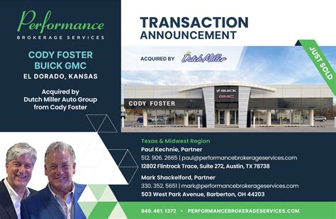 Get the latest business insights from dun &. Performance brokerage services, north america’s highest volume dealership brokerage firm, is pleased to announce the sale of cody foster buick. We are a buick and gmc truck dealership located in el dorado, ks.